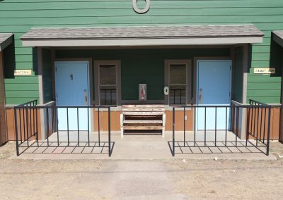 A motel-style unit includes four private rooms