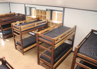 - Two communal bunk rooms per building, each fitted with seven bunk beds and abundant cubicle storage space for your belongings