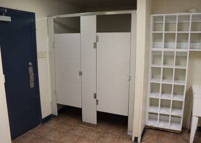 - Bathrooms feature four toilets and four showers each in a private stall
